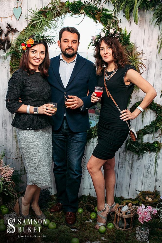 Невозможно представить себе бохо-красавиц без цветочных венков, поэтому все дамы с удовольствием дополняли свой образ веночками из разноцветных бутонов цветов – идеальный пример воплощения идеи Бохо. Арт обьект О2, выполненный нашим цветочным домом, стал главным объектом внимания на протяжении всего вечера.