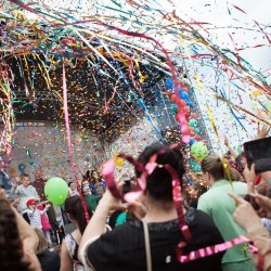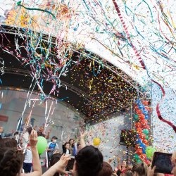 Мыльные пузыри, облака воздушных шаров, танцы и песни… Кого-то поздравляли с днем рождения прямо со сцены, кто-то получал автографы и фотографировался с любимыми звездами, подпевал им прямо со сцены – в общем, праздник удался! При этом артисты дарили собравшимся не только хорошее настроение, но и оказывали ощутимую материальную помощь. Так, Елена Лаптандер, победительница конкурса «Новая звезда», пожертвовала свой денежный приз (870 000 рублей) в пользу фонда.